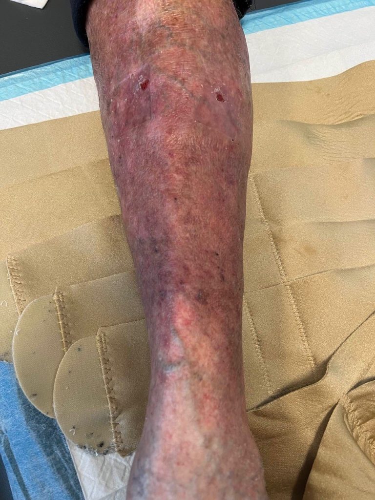 16 July 2 days of bed rest, elevation, and compression. Healing is already starting in the top right corner of the image